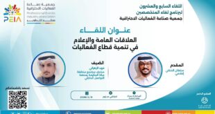 تستعد جمعية صناعة الفعاليات الاحترافية (PEIA) لعقد لقائها السابع والعشرين ضمن “برنامج لقاء المتخصصين”، بعنوان “العلاقات العامة والإعلام في تنمية قطاع الفعاليات”، وذلك مساء يوم غدٍ الإثنين الموافق 9 فبراير 2026. ويستضيف اللقاء الأستاذ فهد الزهراني، مشرف مجتمع منطقة مكة المكرمة بمنصة التواصل الداخلي، ليتحدث عن الأهمية الاستراتيجية للإعلام في إنجاح الفعاليات وبناء الصورة الذهنية الاحترافية، فيما يدير اللقاء الإعلامي …