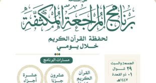 منصور نظام الدين –عبدالله بنجابي : مكة المكرمة:- أوضحت رئاسة الشؤون الدينية بالمسجد الحرام والمسجد النبوي، ممثلةً في إدارة حلقات القرآن الكريم والمتون العلمية بالمسجد النبوي، عن إقامة برنامج المراجعة المكثفة لحفظة القرآن الكريم، وذلك خلال يومي الجمعة والسبت 29 شوال و1 ذي القعدة 1447هـ، ضمن جهودها الرامية إلى تعزيز تعليم القرآن الكريم ونشر قيمه الوسطية بين قاصدي مسجد رسول …
