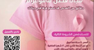 جدة – ماهر عبدالوهاب أطلقت جمعية ” العلاج الآمن ” وبدعم صندوق الوقف الصحي مبادرة صحية نوعية لتقديم فحوصات الماموجرام المجانية للنساء، في خطوة تهدف إلى تعزيز الوعي الصحي بأهمية الكشف المبكر عن سرطان الثدي، ورفع معدلات الوقاية وتقليل نسب المضاعفات الناتجة عن التشخيص المتأخر.وأوضحت الجمعية أن هذه المبادرة تأتي ضمن جهودها المستمرة لدعم صحة المرأة، وتوفير خدمات طبية وقائية …