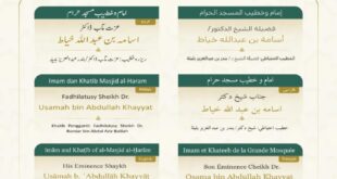 منصور نظام الدين –عبدالله بنجابي : مكة المكرمة:- حددت رئاسة الشؤون الدينية بالمسجد الحرام والمسجد النبوي، عن أسماء خطيبا وإماما صلاة الجمعة في الحرمين الشريفين ليوم بعد غد الجمعة 7 جماد الآخر 1447هـ وذلك ضمن جدولها الدوري لتنظيم الإمامة والخطابةوسيتولى فضيلة الشيخ الدكتور أسامه خياط بإمامة المصلين وإلقاء خطبة الجمعة في المسجد الحرام.فيما يخطب ويؤم المصلين في المسجد النبوي فضيلة …