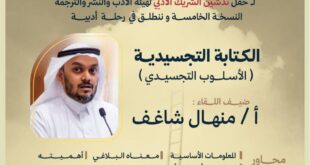 مكة المكرمة – تستعد الساحة الثقافية في مكة المكرمة لاستقبال فعالية أدبية نوعية، حيث يُعلن “7AM COFFEE” بالتعاون مع “الشريك الأدبي” عن انطلاق النسخة الخامسة من رحلته الأدبية المتجددة. ويأتي هذا التدشين مصحوباً بلقاء مميز يُسلط الضوء على أحد أهم الأساليب البلاغية في الكتابة: “الكتابة التجسيدية (الأسلوب التجسيدي)”. وتكتسب هذه النسخة أهمية خاصة، كونها تتزامن مع حفل تدشين الشريك الأدبي …