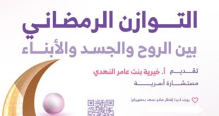 أكمل القراءة »جمعية يسر للتنمية الأسرية بمكة تنظم مساء غد الخميس لقاء بعنوان(التوازن الرمضاني بين الروح والجسد والأبناء)