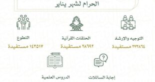 نوال مسلم :مكة المكرمة:- تواصل وكالة الشؤون النسائية بالمسجد الحرام تنفيذ مبادراتها في رحاب المسجد الحرام، ضمن برامجها التي تهدف إلى تعزيز الوعي الشرعي بين قاصدات بيت الله الحرام.وحققت الوكالة منجزات نوعية خلال شهر يناير ٢٠٢٦، حيث بلغ إجمالي عدد المستفيدات من الخدمات الدينية ٤٦٩٧٥٠ قاصدة ، عبر برامج التوجيه والإرشاد، والحلقات القرآنية، والدروس العلمية، وإجابة السائلات، إضافة إلى مبادرات …