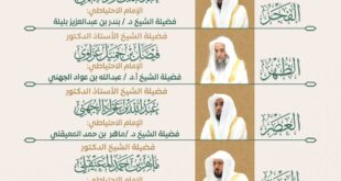 أكمل القراءة »رئاسة الشؤون الدينية بالمسجد الحرام والمسجد النبوي توضح الجدول الأسبوعي لأئمة الحرمين الشريفين