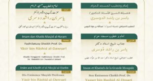 منصور نظام الدين –عبدالله بنجابي : مكة المكرمة:- حددت رئاسة الشؤون الدينية بالمسجد الحرام والمسجد النبوي، أسماء خطيبا وإماما صلاة الجمعة في الحرمين الشريفين ليوم غد الجمعة 20 رجب 1447هـ وذلك ضمن جدولها الدوري لتنظيم الإمامة والخطابة.وسيتولى فضيلة الشيخ الأستاذ الدكتور ياسر الدوسري إمامة المصلين وإلقاء خطبة الجمعة في المسجد الحرام.فيما يخطب ويؤم المصلين في المسجد النبوي فضيلة الشيخ الدكتورعبدالله …